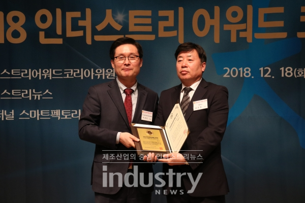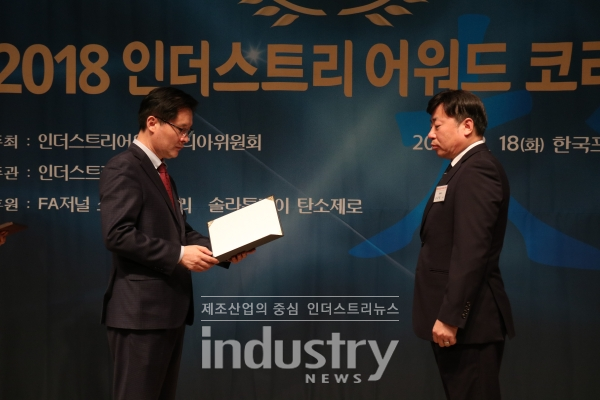 [인더스트리뉴스 방제일 기자] 제조산업 관련 기술개발과 제품개발에 새로운 가치를 창출한 기업을 발굴해 시상하는 ‘2018 인더스트리어워드코리아 대상’이 18일 한국프레스센터 국제회의장에서 개최됐다.