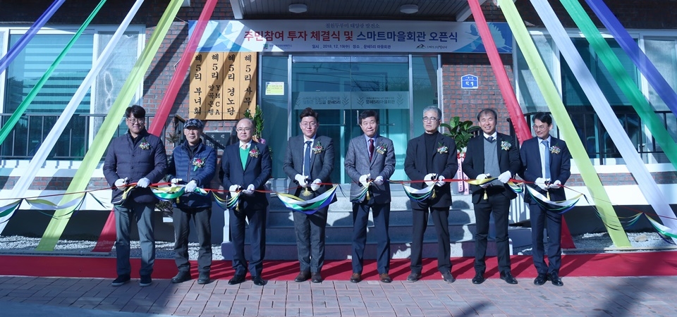 [인더스트리뉴스 이건오 기자] 지난 12월 19일, 국내 최초 주민참여형 대규모 태양광발전소로 2024년까지 200MW 규모의 태양광발전 단지를 구축 중인 철원군 문혜5리 마을회관에서 ‘철원 두루미 태양광발전소’의 주민참여 투자 체결식 및 스마트 마을회관 오픈식이 개최됐다.
