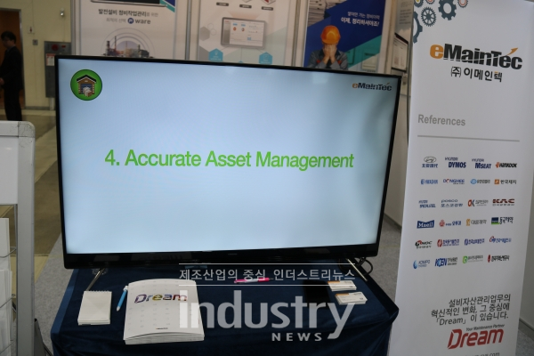 [인더스트리뉴스 김태환 기자] 이메인텍(대표 염명일)이 오는 29일까지 코엑스에서 열리는 스마트공장·자동화산업전 ‘오토메이션월드 2019’에 참여해 제조기업의 보전업무 프로세스에 최적화된 기능을 소개한다. 이 프로세스는 다양한 산업군의 베스트 프랙티스를 반영한 스마트한 자산관리솔루션으로 모든 설비관리 현장에 대한 데이터 가시성을 확보해 예기치 않은 고장을 줄이고 운영 효율을 높여준다. 또한 국내외에 운영 중인 모든 공장의 설비를 실시간으로 통합관리 할 수 있다.