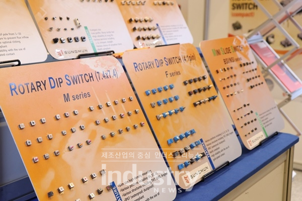 [인더스트리뉴스 김영민 기자] 스위치 전문 개발제조 업체인 성문일렉트로직스(이강일 대표)가 3월 27일부터 29일까지 코엑스에서 열린 스마트공장·자동화산업전에서 자사의 로터리 딥 스위치를 비롯해 LED 모듈, 칩LED, 택트스위치 등을 소개했다.