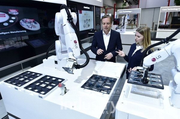 [인더스트리뉴스 김태환 기자] LG전자가 1일(현지시간)부터 5일간 독일 하노버에서 열리는 산업 기술 전시회 ‘하노버 메세 2019(Hannover Messe 2019)’에 처음으로 참가해 LG CNS와 함께 산업용 자율주행 로봇, 인공지능 검사 솔루션, 지능형 자율공장 통합 플랫폼, 산업용 센서 등 다양한 솔루션들을 선보인다. 하노버 메세는 전 세계 75개국에서 6,500여개 기업이 참가하는 세계 최대 산업 기술 전시회로 전 산업군의 트렌드를 가장 빨리 접할 수 있는 전시회다.