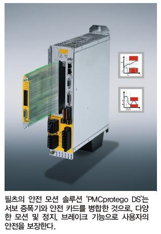 서보증폭기 PMCprotego D 및 안전 카드 PMCprotego S가 있으면 안전 제한 속도(SLS), 안전 작동 정지(SOS) 또는 안전 정지 2(SS2) 등과 같은 기능을 간단하게 실행할 수 있다.