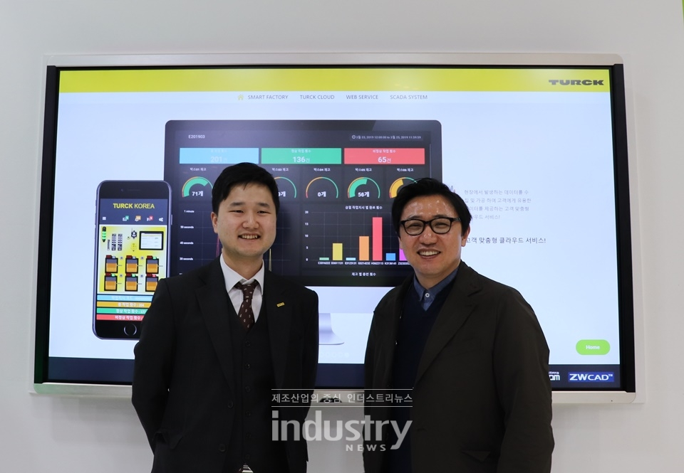 ![터크코리아 정목해 솔루션컨설팅 이사(오른쪽)와 구동우 대리가 ‘터크 클라우드 솔루션’ 앞에서 포즈를 취하고 있다. [사진=인더스트리뉴스]](https://cdn.industrynews.co.kr/news/photo/201904/30718_23699_5322.jpg)