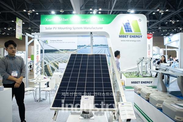 [인더스트리뉴스 김일호 기자] MIBET ENERGY(대표 Michelle cao)가 6월 19일부터 21일까지 경기도 고양 킨텍스(KINTEX) 제1전시장 4, 5홀 전시장에서 열리는 ‘2019 엑스포 솔라·ESS 엑스포·탄소제로 엑스포’ 태양광 구조물 시스템을 전시했다.