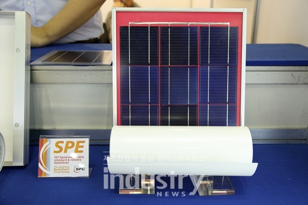[인더스트리뉴스 김윤미 기자] 에스에프씨(대표 정지수)가 6월 19일부터 21일까지 경기도 고양 킨텍스(KINTEX) 제1전시장 4, 5홀 전시장에서 열리는 ‘2019 엑스포 솔라·ESS 엑스포·탄소제로 엑스포’에서 태양광 백시트를 전시했다.