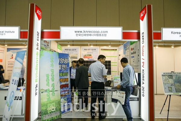 [인더스트리뉴스 김윤미 기자] 한국신재생에너지협동조합(대표 노용성)이 6월 19일부터 21일까지 경기도 고양 킨텍스(KINTEX) 제1전시장 4, 5홀 전시장에서 열리는 ‘2019 엑스포 솔라·ESS 엑스포·탄소제로 엑스포’에서 태양광발전 서비스를 전시했다.