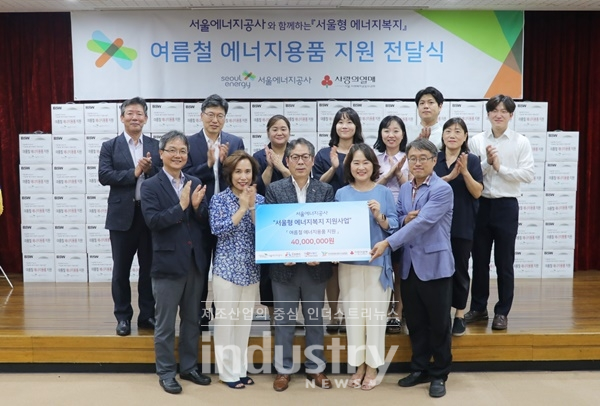[인더스트리뉴스 정형우 기자] 서울에너지공사(사장 박진섭)가 7월 1일 오후 4시, 서울 목동 본사 강당에서 여름철 에너지용품 지원사업 전달식을 개최했다.
