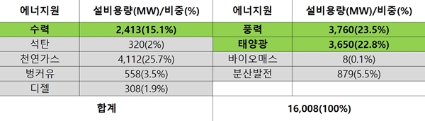 수력발전 의존도 Down, 풍력 및 태양광발전 Up