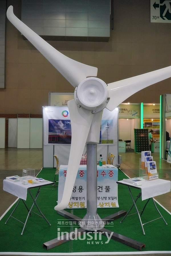 [인더스트리뉴스 조안나 기자] 한국신재생에너지(대표 이일우)가 9월 3일부터 6일까지 고양시 킨텍스(KINTEX)에서 열리는 ‘2019 대한민국 에너지대전’에서 3kg의 가정용 풍력발전기를 전시했다.