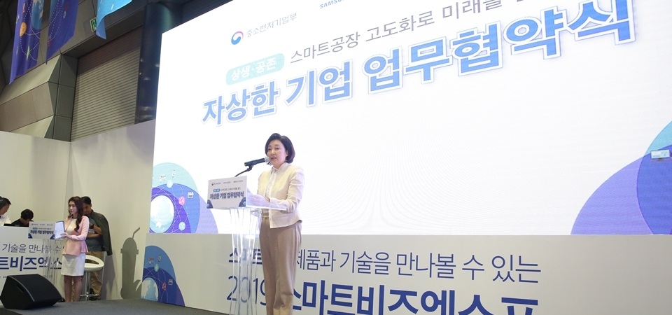 박영선 장관은 “소재·부품·장비 중소기업들이 삼성전자의 체계적인 스마트공장 고도화 지원프로그램을 활용해 데이터를 축적해 나간다면 ‘더 똑똑한 스마트공장’으로 신산업을 창출할 수 있고 4차 산업혁명 시대에 앞장서서 나갈 수 있다”면서, “이번 협약을 통해 삼성전자의 풍부한 제조경험이 중소기업 현장으로 전수될 수 있도록 상생형 스마트공장 확산을 더욱 내실 있게 지원할 것”이라고 밝혔다.