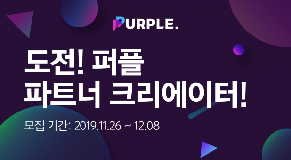 퍼플 파트너 크리에이터 모집 기간은 오는 12월 8일까지며, 방송 플랫폼(유튜브, 트위치, 아프리카TV 등)에서 최근 3개월 동안 3개 이상의 영상을 업로드한 채널 보유자라면 누구나 신청할 수 있다. 자기소개 영상(30초 이상)과 신청서를 함께 제출하면 된다.