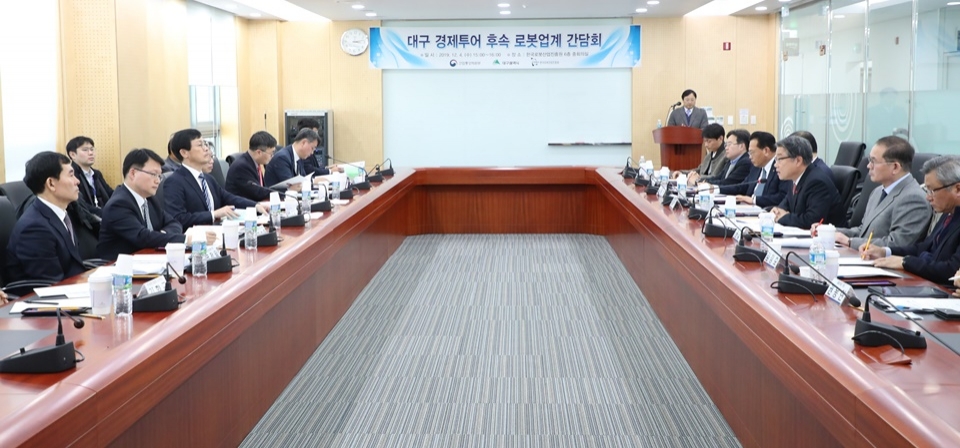이날 행사는 로봇산업 발전방안 추진현황에 대한 산업부와 대구시의 발표를 시작으로 지역기업 등 로봇업계의 애로 및 건의사항을 청취하는 간담회 순으로 진행됐다.