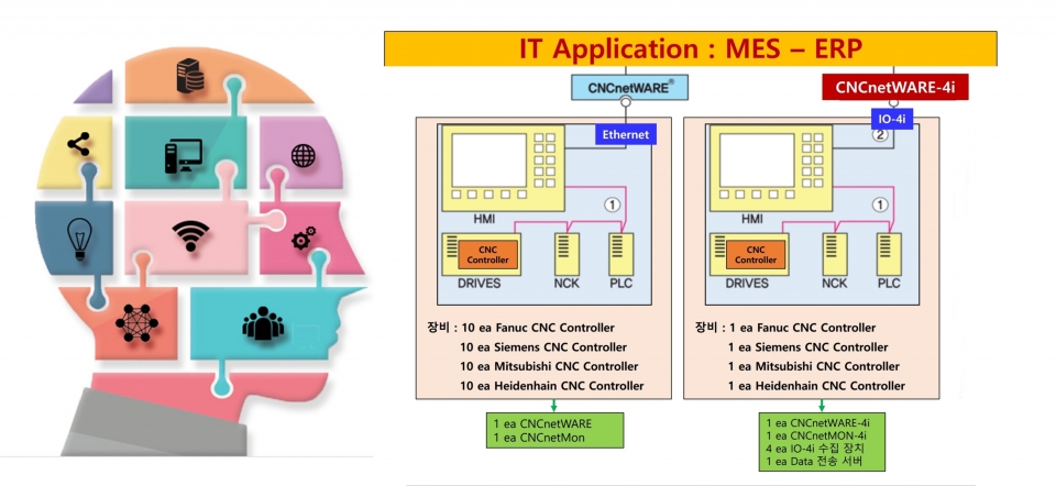 또한, CNC넷웨어는 별도로 하드웨어를 추가 설치하거나 수정할 필요 없이 각기 다른 제조업체의 장비를 기존 IT인프라와 원활하게 통합한다. 그리고 이기종의 기계나 제어통신이 있어도 응용프로그램 내에서 데이터 리딩과 정보 변환이 용이하다. 이뿐만 아니라 기술 리소스의 데이터를 MES/ERP에서 IoT 및 빅데이터까지 모든 솔루션에 전달하는 역할도 구현하고 있다.