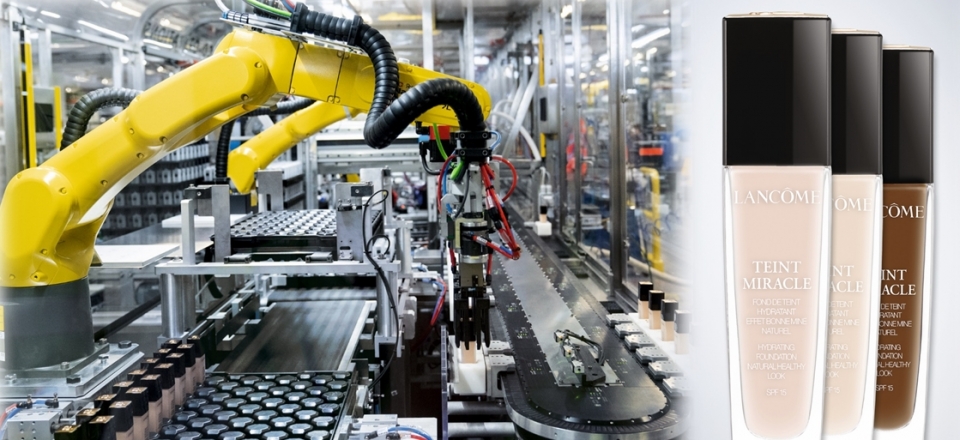 Caudry 공장의 기존 메이크업 파운데이션 생산은 컨베이어 시스템과 제품 버퍼를 통해 기존 자재 흐름으로 연결된 여러 공급 업체의 여러 가지 기계로 구성됐다. 그러나 이 라인은 유연성이 부족해, 더 이상 증가하는 제품 변형의 대역폭과 점점 더 작아지는 로트 크기의 생산을 지원할 수 없었다.
