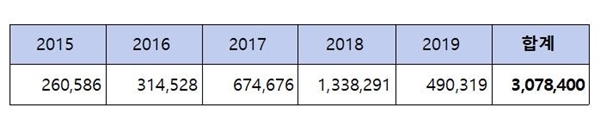 산지전용이 가능했던 것도 일시사용허가로 변경했다. 박근혜 정부가 무분별하게 산지태양광 인센티브를 강화해 본격적인 산림훼손이 시작된 지 2년만의 일이다. 이로 인해 2017년 67만건, 2018년 133만건에 달했던 벌목수는 2019년 49만건으로 대폭 감소했다.