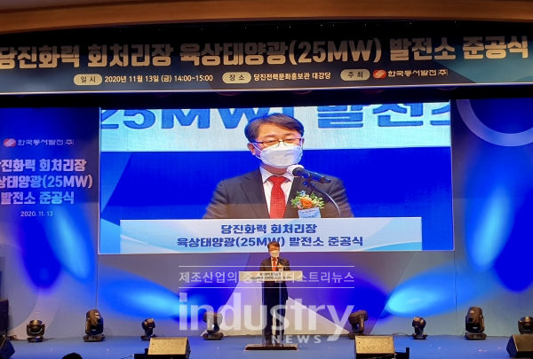 [인더스트리뉴스 정한교 기자] 한국동서발전(사장 박일준)이 지난 11월 13일 당진화력본부에서 25MW급 당진화력 회처리장 태양광설비 준공식을 개최했다. 이날 준공식에는 양승조 충남도지사, 김명선 충남도의회 의장, 김홍장 당진시장과 지역주민 등 40여명이 참석했다.