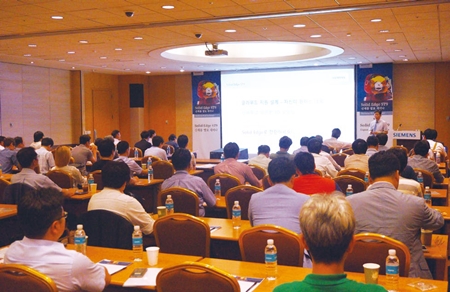 | 지멘스PLM소프트웨어코리아의 장원호 이사가 주제발표를 하고 있다. | ||