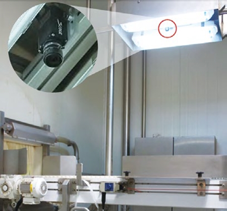 | Basler scout GigE 카메라는 컨베이어 위의 광원 아래 설치돼 분말 자루의 그림을 캡처한다. | ||