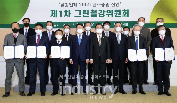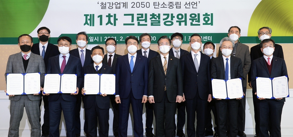 성윤모 산업통상자원부 장관이 참석한 가운데 2월 2일, ‘그린철강위원회’ 출범식 및 제1차 회의가 개최됐다. 그린철강위원회는 철강업계의 2050 탄소중립 논의를 위해 꾸려진 산·학·연·관 협의체로 한국철강협회 최정우 회장(현 포스코 회장)과 연세대학교 민동준 부총장이 공동위원장을 맡았다.