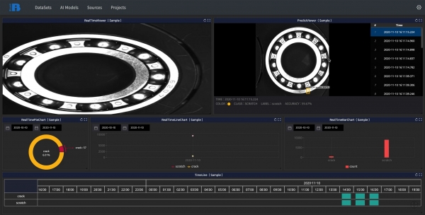 이번 전시회에 출품 제품인 ‘블루아이(BluAi)’는 인공지능 비전 기반의 제품 품질 검증 솔루션으로 비전문가도 별도 개발없이 클릭만으로 제품 품질 검증에 대한 인공지능 비전 모델을 생성할 수 있다. 현재 블루아이 솔루션은 △장소에 제약없이 웹 기반의 GUI 화면을 통한 실시간 품질 검증 모니터링 △인공지능 학습을 위한 이미지 라벨링 자동 생성 △비전문가를 위한 인공지능 비전 모델 자동생성 △향후 데이터 분석을 위한 품질 관리 로그 저장 등 영상 이미지(카메라, 스캐너 등) 수집부터 인공지능 모델 생성까지 한 번에 제공하는 One-Stop Service(OSS) 솔루션이다.