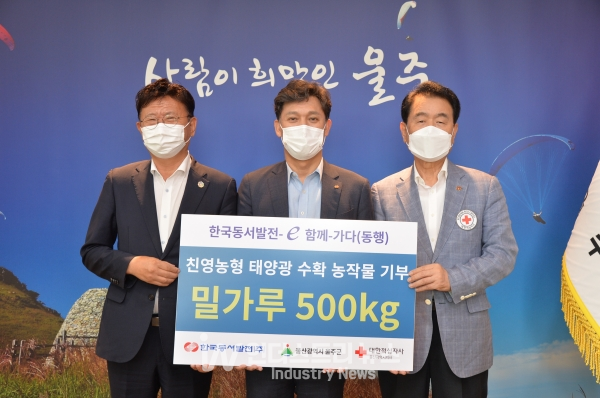 동서발전은 7월 8일 울산광역시 울주군청에서 동서발전 김영문 사장, 이선호 울주군수, 대한적십자사 울산지사 김철 회장 등이 참석한 가운데 실증단지 재배 농작물 전달식을 열었다.