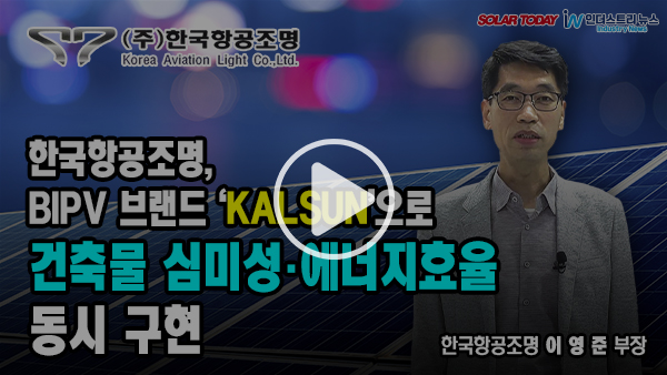[인더스트리뉴스 정한교 기자] 한국항공조명은 항공장애표시등, 방폭항공장애표시등 등 항공관련 조명 설계·제조 전문기업이다. 기술력과 시장·영업력을 토대로 BIPV 시장에 진출, 8월 말이면 자동화된 BIPV 생산 공장 준공이 완료될 예정이다. 한국항공조명의 영어 약자인 KAL(Korea Aviation Light)에 SUN을 합친 BIPV 브랜드 ‘KALSUN’은 프레임 구조 개선을 통한 건식 시공방법을 적용한 제품이다. 레진을 주입해 UV로 경화시켜, 내구성과 투과성을 증진시켰다.