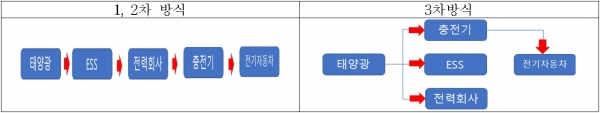 이전까지는 전력직거래 규제로 인해 ‘태양광→ESS→전력회사→전기차 충전기’로 이용하는 방식을 택해왔다. 이번 3, 4차에는 규제 특례를 적용해 ‘태양광→전기차 충전기’로 직접 충전, 밤에는 ESS로 충전할 수 있도록 했다.
