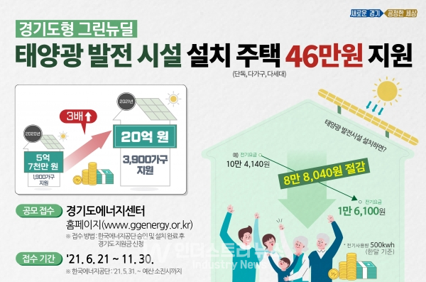 [인더스트리뉴스 정한교 기자] 경기도는 전국 대비 태양광발전 비중이 6.7%로, 다소 저조한 지역이다. 수도권에 위치해 주거형태, 인구밀집지역, 토지비용 등 타 시·도와 달리 주변 환경 여건상 설치 대상지가 매우 제한적이기 때문이다.