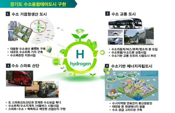 경기도는 2019년부터 재생에너지 확대, 에너지 효율화 정책과 함께 경기도 수소에너지 기본계획을 수립해 수소인프라 구축 및 수소산업 육성에 힘을 쏟고 있다. 사용기반 구축 및 미래 신성장 동력원으로 육성하기 위해 수소생산시설 구축과 수소배관망 설치, 수소융합테마도시 및 경기도형 수소융합클러스터 조성을 중점 추진 중이다.