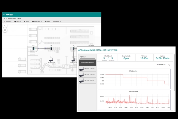 유선 연결과 달리 무선 연결은 눈에 보이지는 않는 다양한 요인으로부터 영향을 받기 때문에 이상징후를 감지하기가 어렵다. 모든 요소들이 복합적으로 결합돼 무선 연결의 관리 및 문제 해결을 매우 어렵게 만든다. Moxa는 유무선 네트워크를 시각화하는 관리 소프트웨어인 MXview wireless(무선 애드온 모듈)를 통해 유무선 네트워크를 관리할 수 있도록 해준다. MXview는 산업용 네트워크와 연결된 장치를 구성하고, 모니터링 및 진단할 수 있도록 설계됐다.