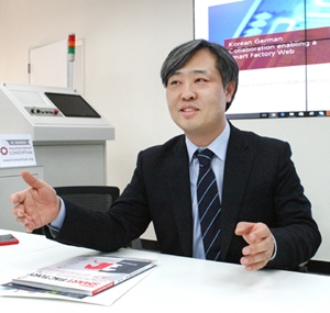 송병훈 단장은 “스마트 팩토리 국제 표준화 IEC, IIC에 대한 참여와 데모 스마트 공장 테스트베드 구축 사업 등에 참여하고 있다”며, “사업단의 주력 성과로는 글로벌 수준의 스마트 팩토리 레퍼런스 모델로 스마트 팩토리를 구축하는 표준을 만들고, 이를 수요기업에 제공하는 것을 목표로 한다”고 밝혔다. 이어 “기존에 서로 다른 구축 인프라 환경을 가지고 있는 스마트 팩토리를 산업 IoT 기술로 연결하는 ‘스마트 팩토리 웹(SFW : Smart Factory Web)’기술은 이러한 표준에 핵심기술”이라며, “사업단과 독일 프러운호퍼 연구소가 2년동안 개발한 기술로 지난해 9월 국제 산업인터넷컨소시엄(IIC) 회의에서 7번째 스마트 팩토리 표준 구현 모델로 최종 승인을 받는 성과를 이룬바 있다”고 전했다.
