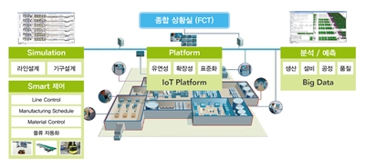 스마트 제어는 IoT 플랫폼을 통해 설비 및 센서로부터 수집된 각종 데이터를 기반으로 구현된다. 이러한 통합 데이터 연계체계를 통해 공장 전체 모근 생산라인에 대한 분석, 예측이 가능하게 되며 각 공정별 현장에 대한 실시간 모니터링과 이상 발생시 즉각 대응 체계가 수립될 수 있고 각 생산 라인별로 정확한 통제 및 운용이 가능하게 된다.