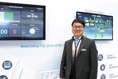 박점종 부장은 “스마트 팩토리 솔루션 aIdoo를 두산공작기계의 창원공장, 중국 DMTC공장에 자체적으로 설치해 검증했다”고 언급하며, “장비 고장, 알람, 이상 발생시 문자 전송으로 감지, 복구, 수리 대응시간 단축의 효과가 기대되고, 가동상태 및 실적을 한눈에 파악하고 관리할 수 있는 이점이 있다”고 전했다. 또한 “생산실적 자동집계로 가공 작업 보고가 불필요하고, 가공 프로그램별 통계 자료 제공으로 설정시간, 실행시간, 비가동시간 개선, Offset값 등의 4M 가공조건 변화 감지로 집중검사 정보 제공 및 불량 예방, 적시 적절한 툴 교체 정보 제공 등의 효과를 기대할 수 있다”고 덧붙였다.
