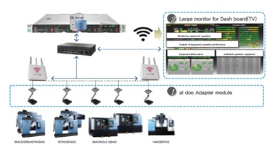 두산공작기계(www.doosanmachinetools.com) 생산 현장에 적용되고 있는 스마트 팩토리 솔루션인 aIdoo(Artificial Intellgence DOOSAN)는 공작기계 및 공장내 다양한 설비로부터 MTConnect 또는 OPC-UA 표준 방식으로 빅데이터를 수집한다. 클라우드나 포그 플랫폼에 저장된 수집 데이터는 비즈니스의 용도와 목적에 따라 모니터링, 분석, 예지, 제어, 운영을 지원하고 기간 시스템과 연동해 관리할 수 있다.
