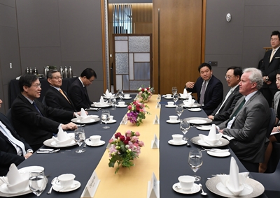 | ▲ 포스코 권오준 회장이 지난 3월 3일 미국 샌프란시스코에 위치한 GE디지 털을 방문해 포스코와 GE의 스마트 팩토리에 대한 협력방안을 논의하고 있 는 모습 | ||