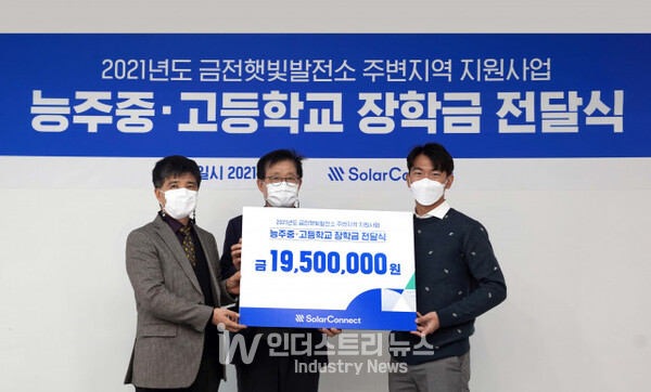 [인더스트리뉴스 정한교 기자] 솔라커넥트(대표 이영호)가 태양광발전소 주변 지역사회 발전을 위해 나선다. 솔라커넥트는 최근 전남 화순 소재 능주중·고등학교에 장학금 1,950만원을 전달했다고 밝혔다.