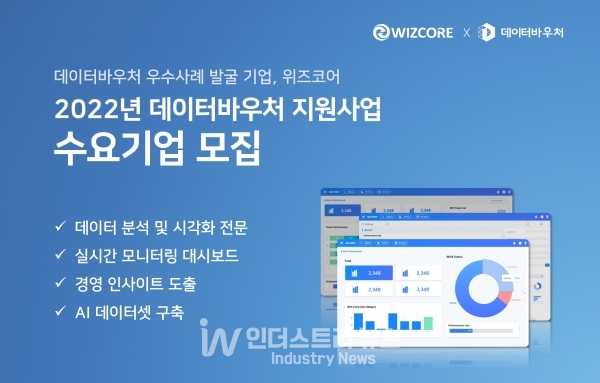 [인더스트리뉴스 정한교 기자] 위즈코어(대표 박덕근)가 국내기업의 데이터 활용 역량 강화 지원에 나선다. 위즈코어는 지난해에 이어 한국데이터산업진흥원이 주관하는 ‘데이터바우처 지원사업’에 참여할 수요기업을 모집한다고 28일 밝혔다.