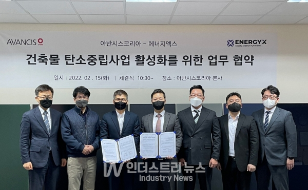 에너지엑스(대표 박성현)는 최근 아반시스코리아(대표 이종진)와 제로에너지건축(ZEB), 그린리모델링을 통한 건축물 탄소중립 사업을 공동으로 추진하는 업무협약을 체결했다고 2일 밝혔다.