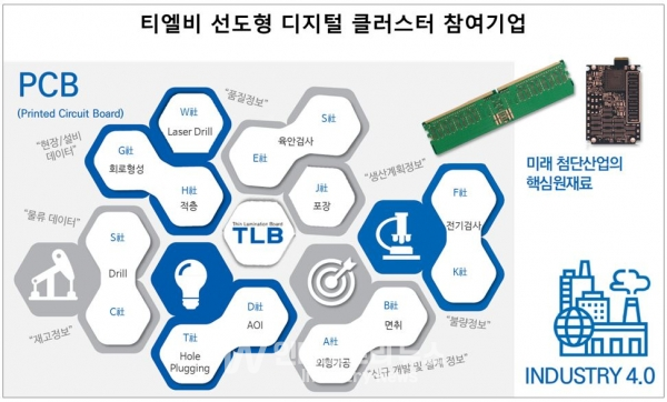 2021년 신설된 ‘선도형 디지털 클러스터’ 사업은 중소벤처기업부 주관으로 진행되며, 선도기업인 티엘비와 전후방 밸류체인을 구성하는 14개 협업기업을 컨소시엄으로 구성해 각 공장간 데이터·네트워크 기반의 상호 연결을 통해 공동 자재관리부터 수주·생산·유통 등 공장 운영 전반에 걸쳐 반도체 부품 제조 협업 체계를 구축하는 것을 목표로 하고 있다.