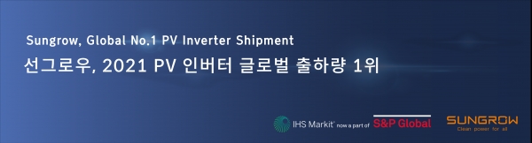 한편, 선그로우는 2021년 한 해에만 약 2조6,500억원에 달하는 글로벌 매출을 확보했다. 이를 통해 30.6%의 글로벌 시장 점유율을 달성, 명실상부 글로벌 No.1 태양광 인버터기업임을 입증하고 있다.