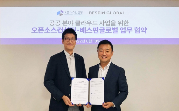 [인더스트리뉴스 조창현 기자] 클라우드 딜리버리 플랫폼 기업 베스핀글로벌(대표 이한주)과 클라우드 마이그레이션 전문 기업 오픈소스컨설팅(대표 장용훈)이 ‘공공분야 클라우드 사업 협력을 위한 전략 파트너십’을 체결했다고 8월 10일 밝혔다.