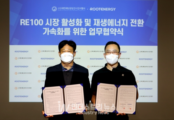 [인더스트리뉴스 정한교 기자] 디지털 기후금융 플랫폼기업(온라인투자연계금융업) 루트에너지는 RE100 시장 활성화 및 재생에너지 전환 가속화를 위해 대한태양광발전사업자협회(이하 ‘대태협’)와 업무협약(MOU)을 체결했다고 23일 밝혔다.
