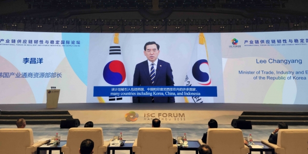 [인더스트리뉴스 조창현 기자] 산업통상자원부 이창양 장관은 한국시간 기준 지난 19일 16시에 중국 저장성 항저우에서 열린 ‘회복력 있고 안정적인 산업·공급망 국제포럼’ 개막식에 영상 축사로 참여했다.