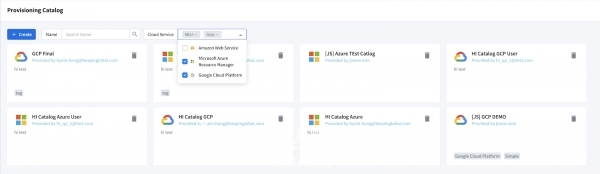 이번 데브OS 업데이트로 베스핀글로벌은 미리 정의돼 있는 코드를 이용해 인프라를 쉽게 배포할 수 있는 ‘카탈로그’ 기능을 강화했다. 기능 강화로 AWS, MS애저, 구글클라우드 등 주요 퍼블릭 클라우드 3사에 대한 모든 인프라 코드를 지원하게 된다.