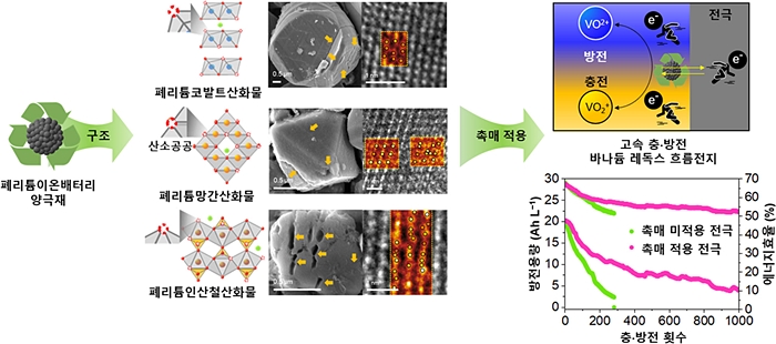 고민성 교수는 “이번 연구는 고속 충·방전 바나듐레독스흐름전지 개발은 물론 폐리튬이온전지 양극재를 활용한 촉매설계에 기여할 것”이라며, “폐리튬이온전지 발생량이 급증할 것으로 전망되는 상황에서 촉매로서의 재활용 방안을 제시해 자원순환 효과도 기대할 수 있다”고 말했다.