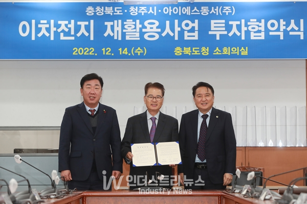 [인더스트리뉴스 이건오 기자] 충북도와 청주시는 아이에스그룹의 계열사인 아이에스동서와 지난 12월 14일 충북도청에서 이차전지 재활용시설 건립에 따른 투자협약을 체결했다고 밝혔다.