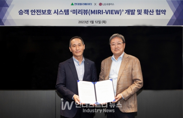 [인더스트리뉴스 최종윤 기자] 현대엘리베이터와 LG유플러스가 지능형 영상분석 및 음성인식 기술을 적용해 승객 안전을 보호하는 ‘미리뷰(MIRI-VIEW) 시스템 개발 및 확산 협력’을 위한 양해각서(MOU)를 체결했다고 지난 13일 밝혔다.