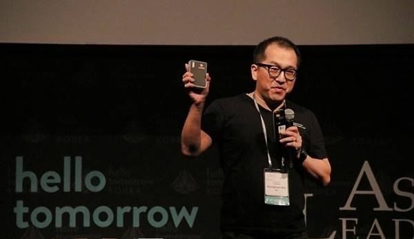 | 울랄라랩 김승현 이사가 자체 개발한 IoT 디바이스 위콘을 설명하고 있다. [사진=울랄라랩] |