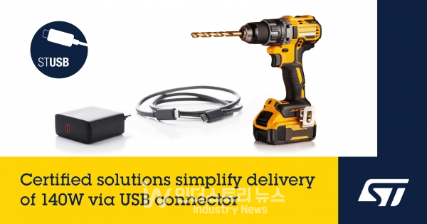 [인더스트리뉴스 조창현 기자] 다양한 전자 애플리케이션과 고객들을 지원하는 세계적 반도체 회사 ST마이크로일렉트로닉스(이하 ST마이크로)가 USB 전력공급(USB PD) EPR전원공급장치, 충전기 제품 내 어댑터(소스) 및 기기(싱크)에 적용되는 IC 2종에 대해 ‘USB-IF(USB Implementers Forum) 인증’을 획득했다.