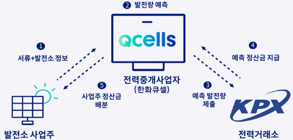 한화큐셀은 예측사업에 참여할 재생에너지 발전사업자들을 모집하고 이들에게 정확도 높은 예측 서비스를 제공한다. 한화큐셀은 모집한 발전소의 발전량을 하루 전에 예측해 전력거래소에 제출하고, 예측의 정확도에 따라 정산금을 받아 발전사업자들에게 분배한다. 예측사업에 참여하는 발전사업자들은 전력 판매 수익 이외의 추가 수익을 확보하고, 전력거래소 등은 전력 계통의 안정성을 강화할 수 있다.